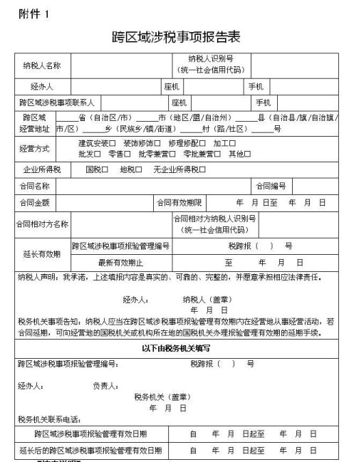 附件:1.跨區(qū)域涉稅事項(xiàng)報(bào)告表